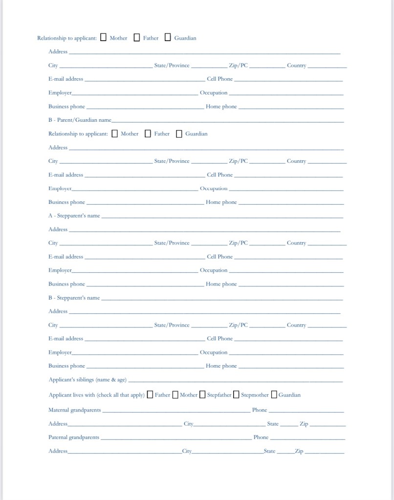 学校が違えば多少内容やレイアウトが変わるのかも知れませんが、同じような全寮制ボーディングスクールであれば、入学願書の中身がそれほど違うということはないのではと思います。少しでも、皆さんの参考になれば嬉しいです。